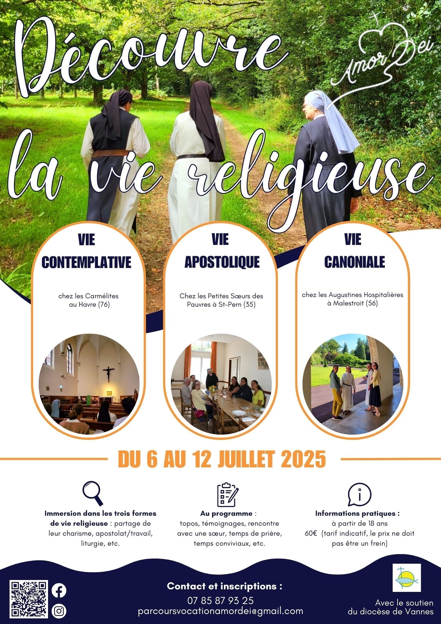 La Route Amor Dei, c’est une retraite itinérante, qui propose de découvrir « de l’intérieur » les 3 formes de vie religieuse féminine, en passant deux jours en immersion dans chaque communauté rencontrée, avec d’autres jeunes femmes s’interrogeant aussi sur la vocation religieuse.